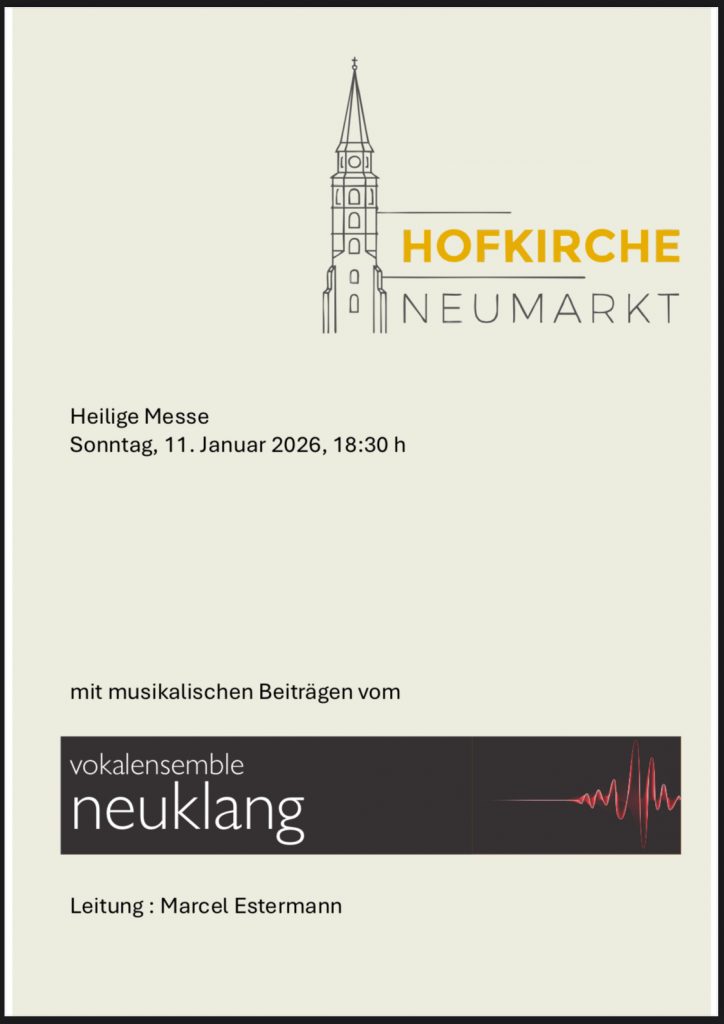 Wir proben endlich wieder regelmäßig! Unser Vokalensemble trifft sich nun wieder jedem letzten Sonntag im Monat (außer bei Schulferien) für etwa 3 Stunden zum gemeinsamen Proben. Mehr zu unserem Chor erfahren Sie auf der Seite “Das sind wir“. Für mehr Informationen zu den Proben kontaktieren sie bitte unseren Chor-Koordinator per eMail: robert@neuklang-neumarkt.de Viel Spaß auf unserer Homepage!